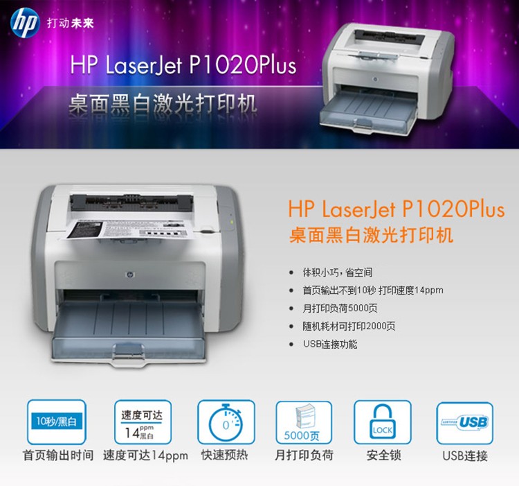 惠普(HP)黑白激光办公打印机1020plus