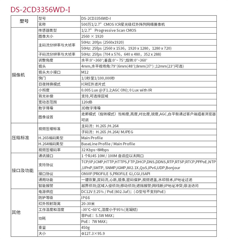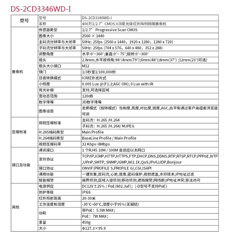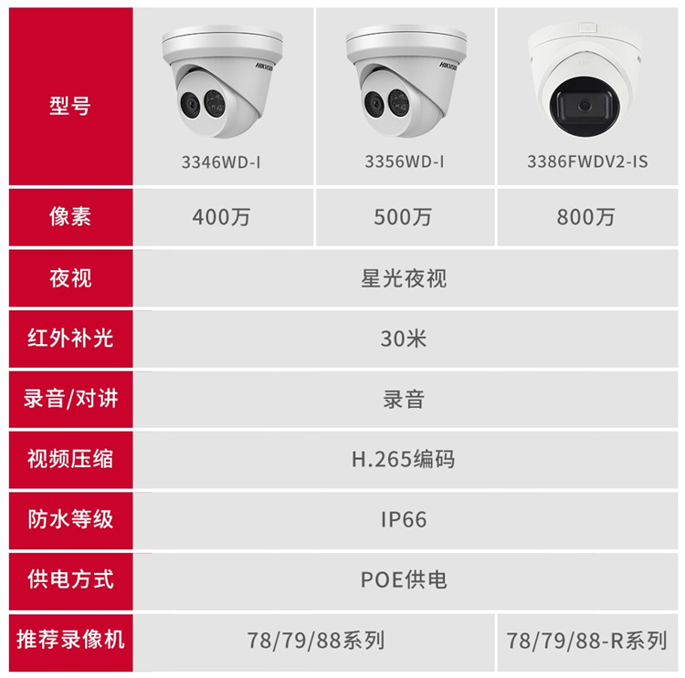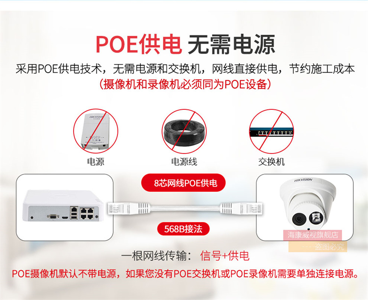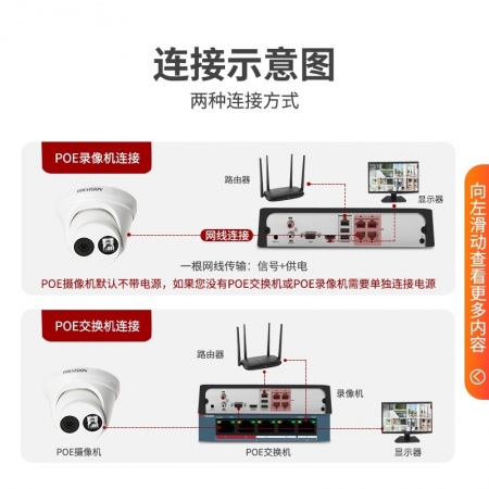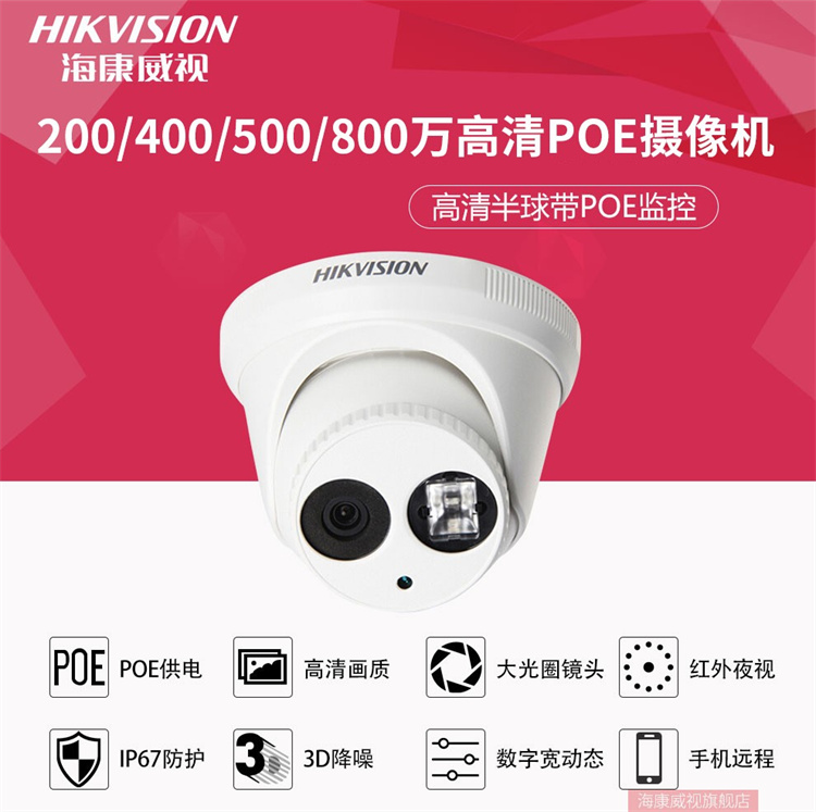 海康威视 DS-2CD3346WD-I (400万)海康威视星光级搭配监控设备套装高清半球带POE6MM焦距
