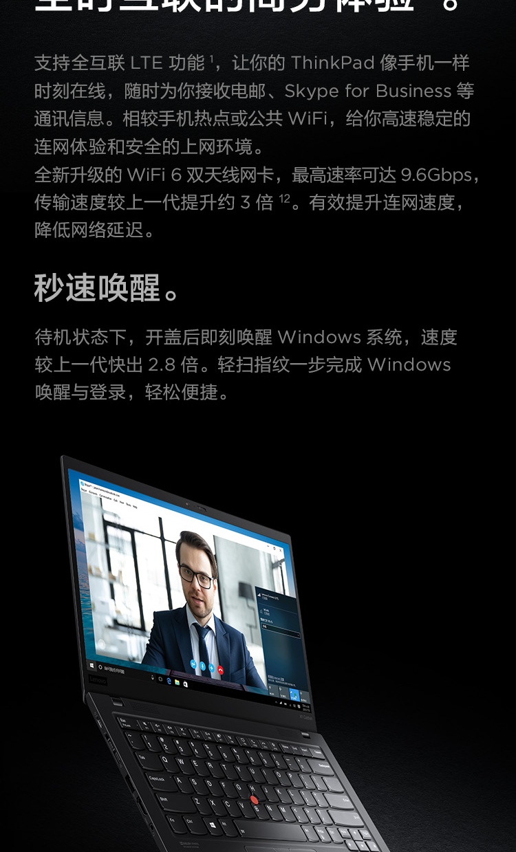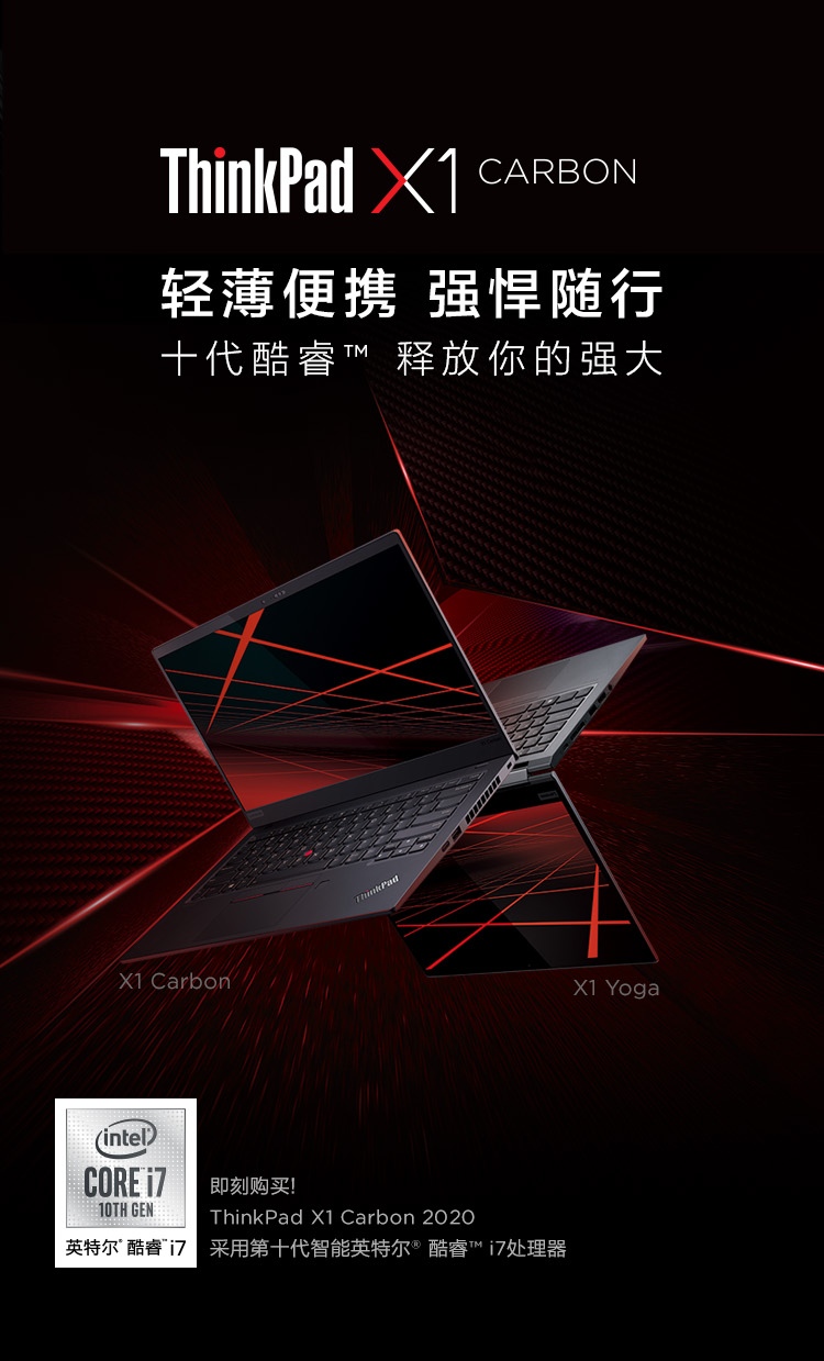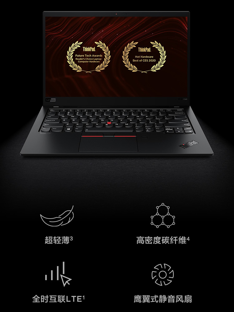联想ThinkPad X1 Carbon 2020(7GCD)14英寸轻薄笔记本i7-10710U/16G/512GSSD/FHD/4G版