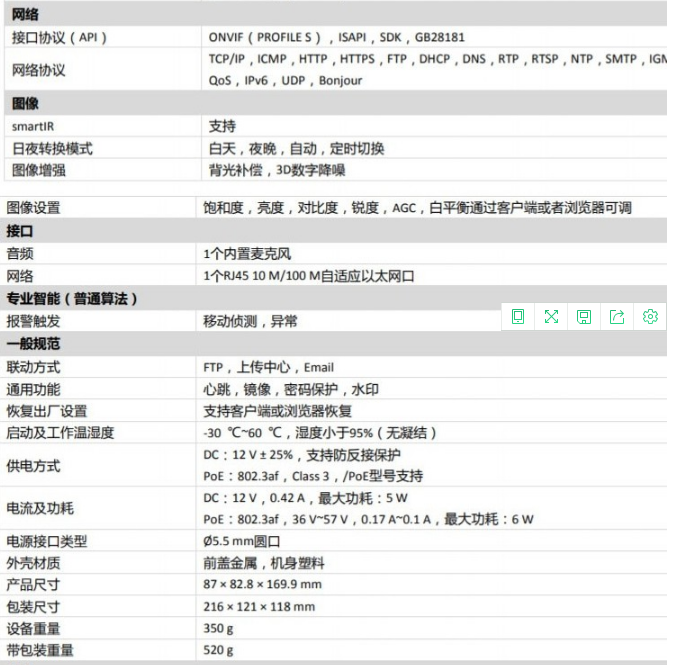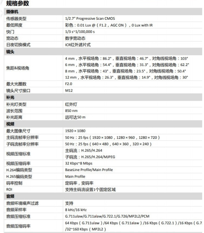 海康威视(HIKVISION)DS-IPC-B12HV2-IA 监控摄像机 POE供电/ 4MM焦距