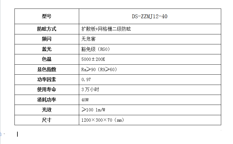 海康威视 DS-ZZMJ12-40 格栅灯 1200×300×70(mm)