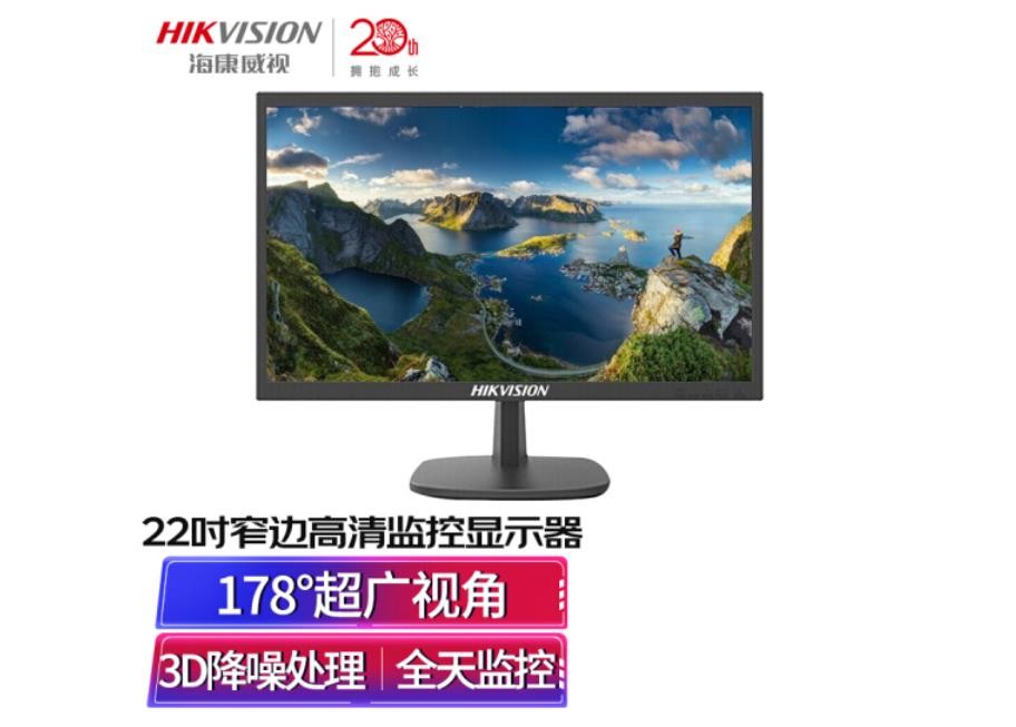 • 海康威视HIKVISION 22英寸1080P窄边框低功耗显示器D5022FQ-NA多接口全天候监控器台式机电脑显示屏