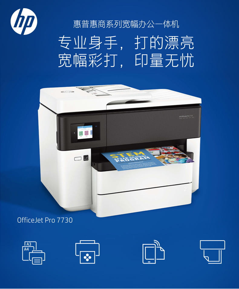 惠普(HP)OJ 7730 无线四合一多功能一体机 惠商宽幅系列 无线,打印,传真,扫描,复印(7740简配版)